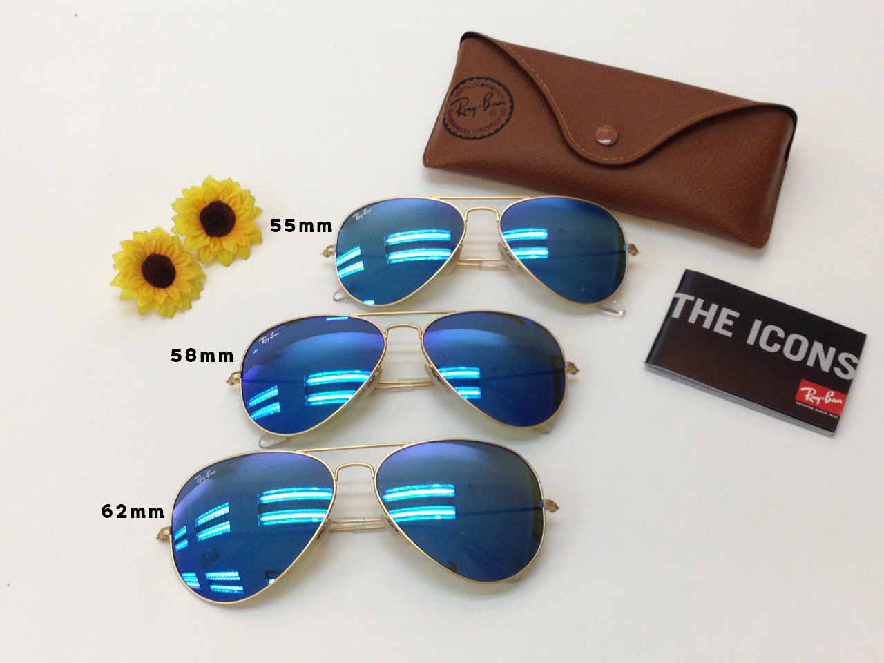 Rayban Aviator มี 3 Size คือ 55mm (เล็ก), 58mm(กลาง),
